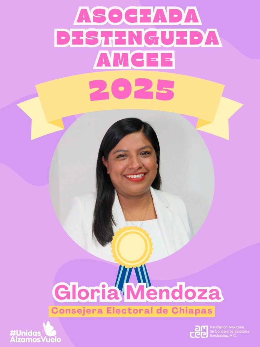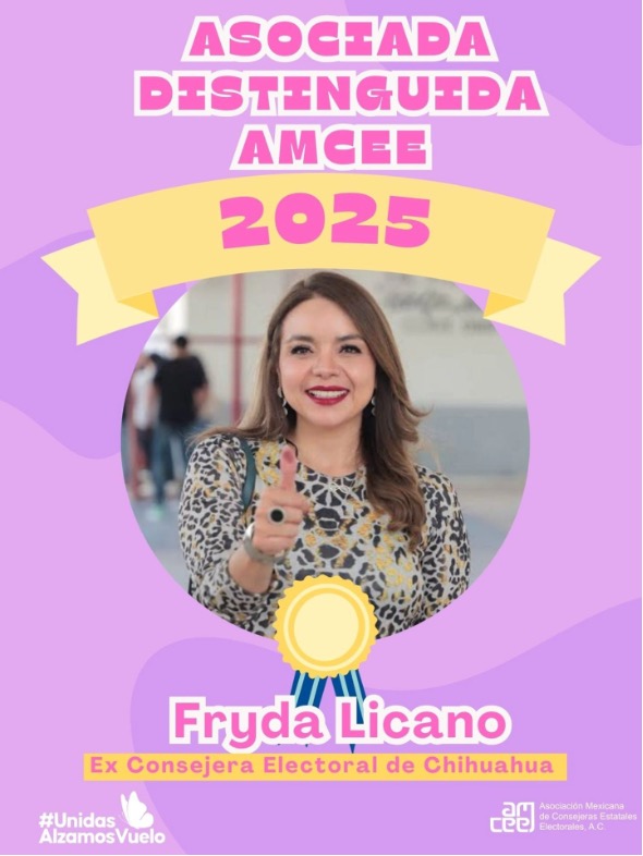 Reconocemos el trabajo de nuestras tres asociadas que fueron merecedoras del reconocimiento a la “Asociada Distinguida AMCEE 2025 ” el cual es fruto de su esfuerzo por consolidar una democracia paritaria e inclusiva: